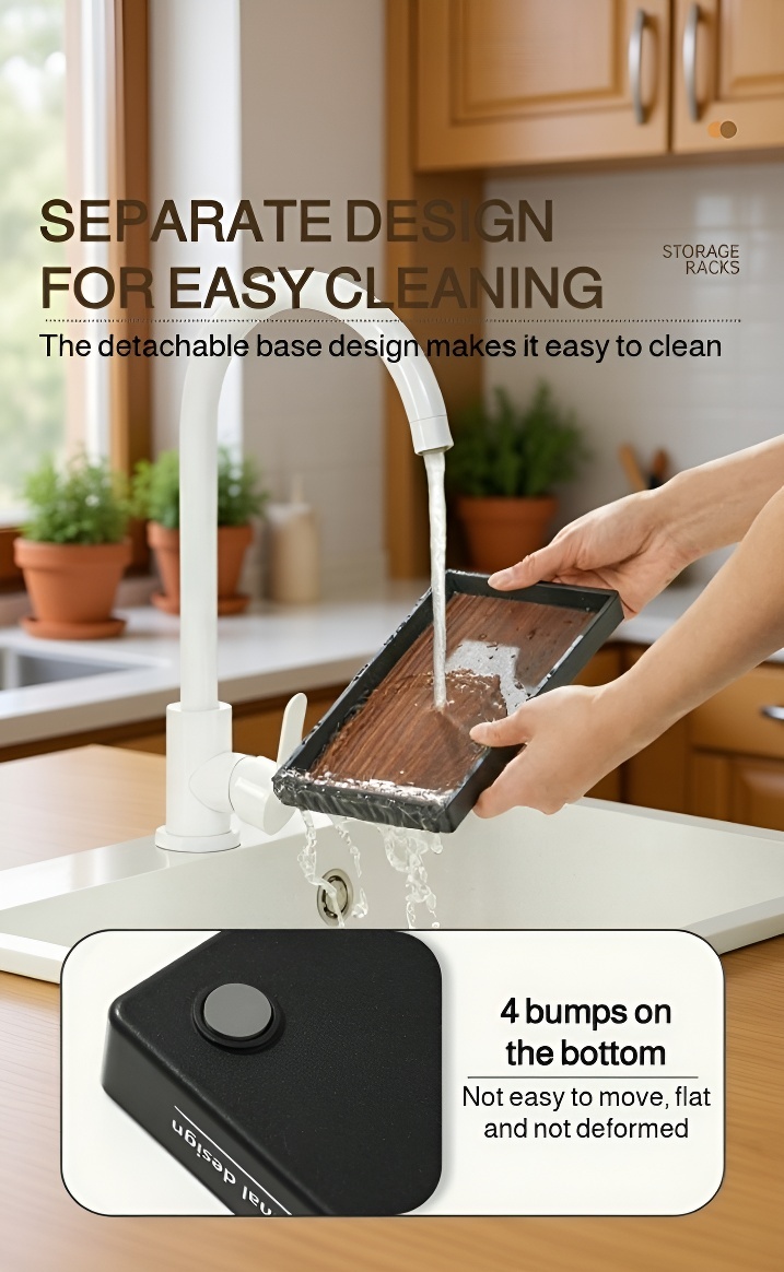 ● Equipped with non-slip grips and a sturdy build, the rack remains securely in place even when loaded with heavy items, preventing spills and accidents.